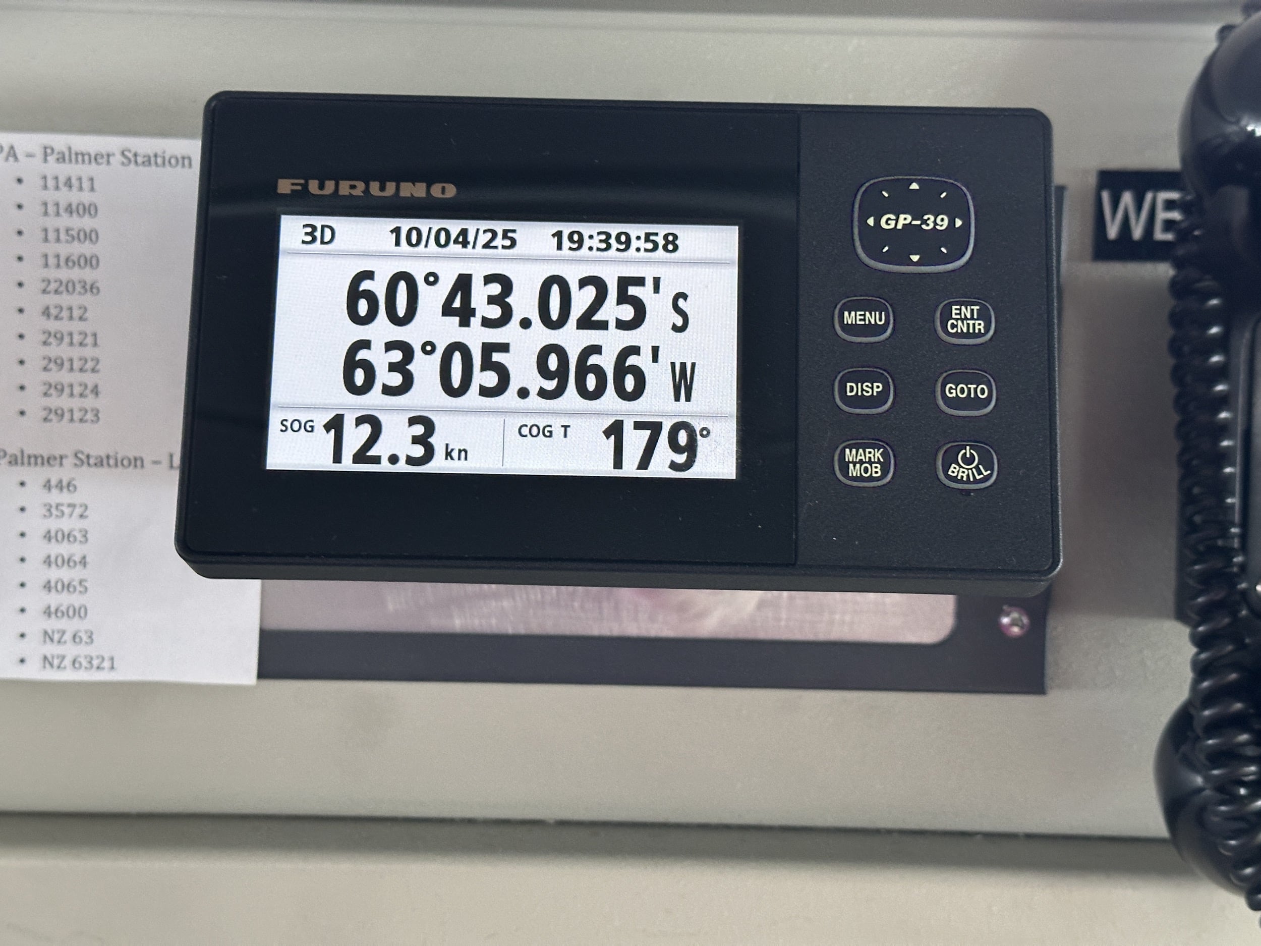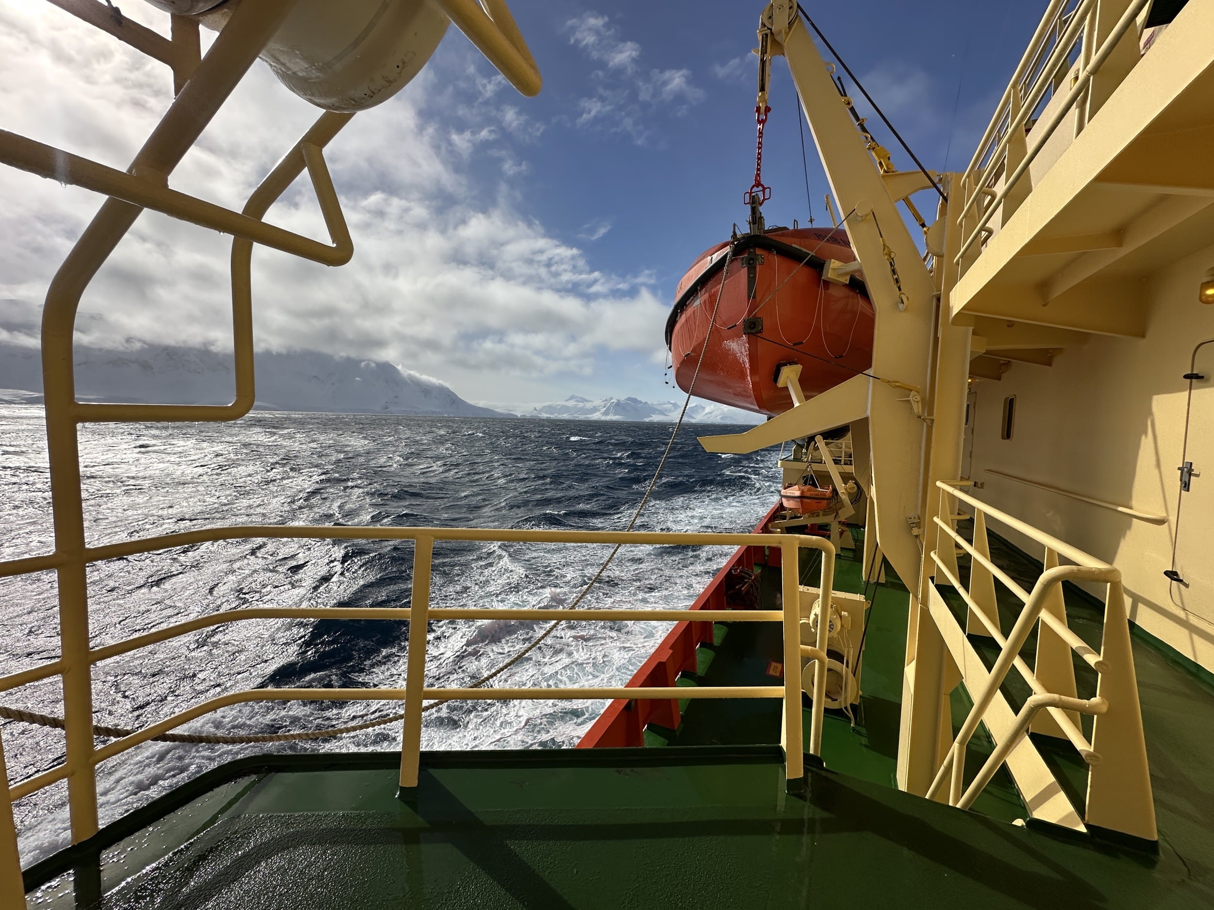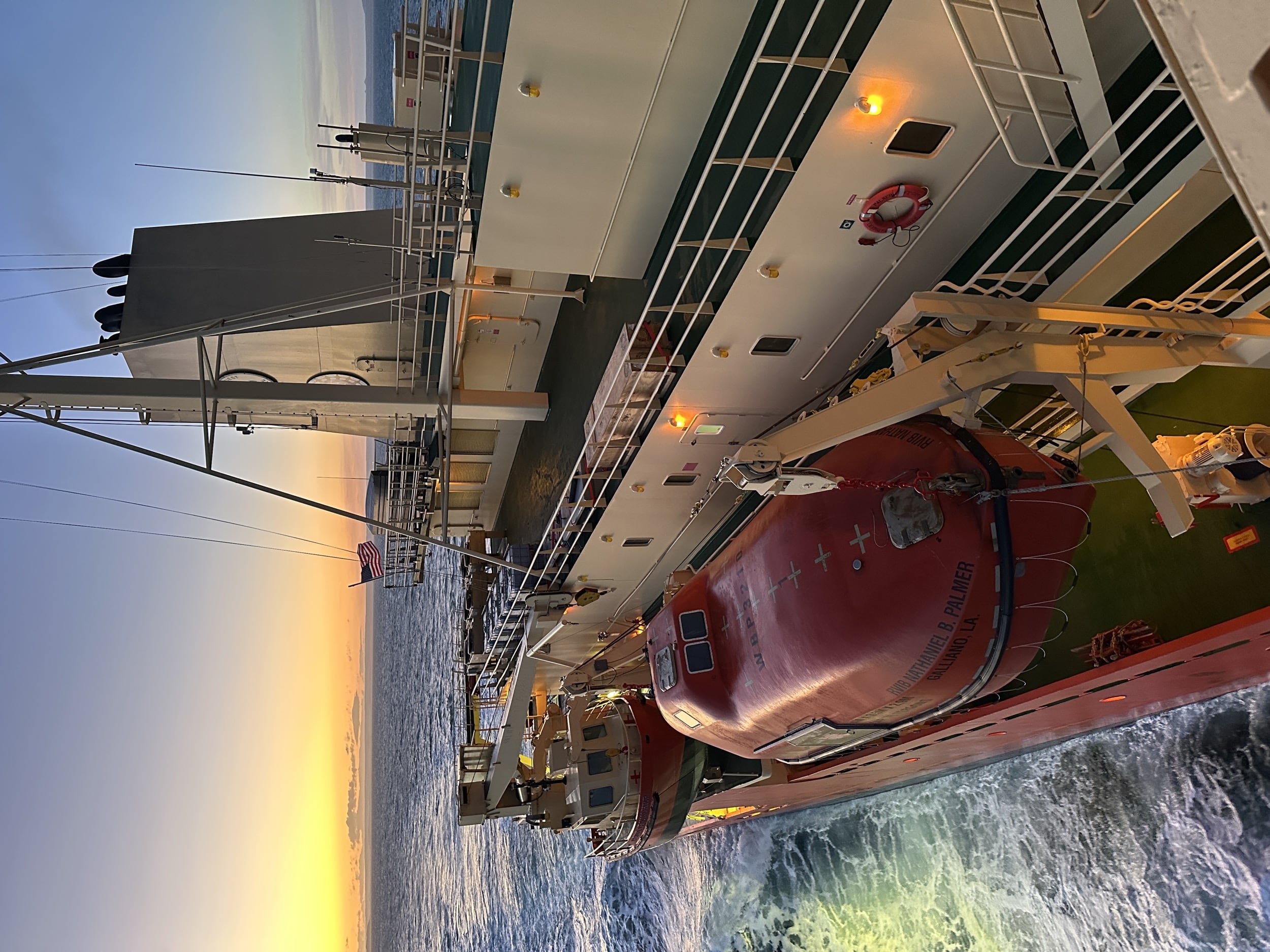 At 9am the following morning they pulled up the gangway, tossed the lines, and pushed away from the dock: we were now officially on our way to Palmer Station! Very exciting stuff. The energy was high, we were all very excited to finally be underway (as they say), but there was also something somber in the air because this would be the final voyage to Antarctica for the Nathaniel B Palmer after 33 years of service with the National Science Foundation (DOGE, budget cuts, etc).
