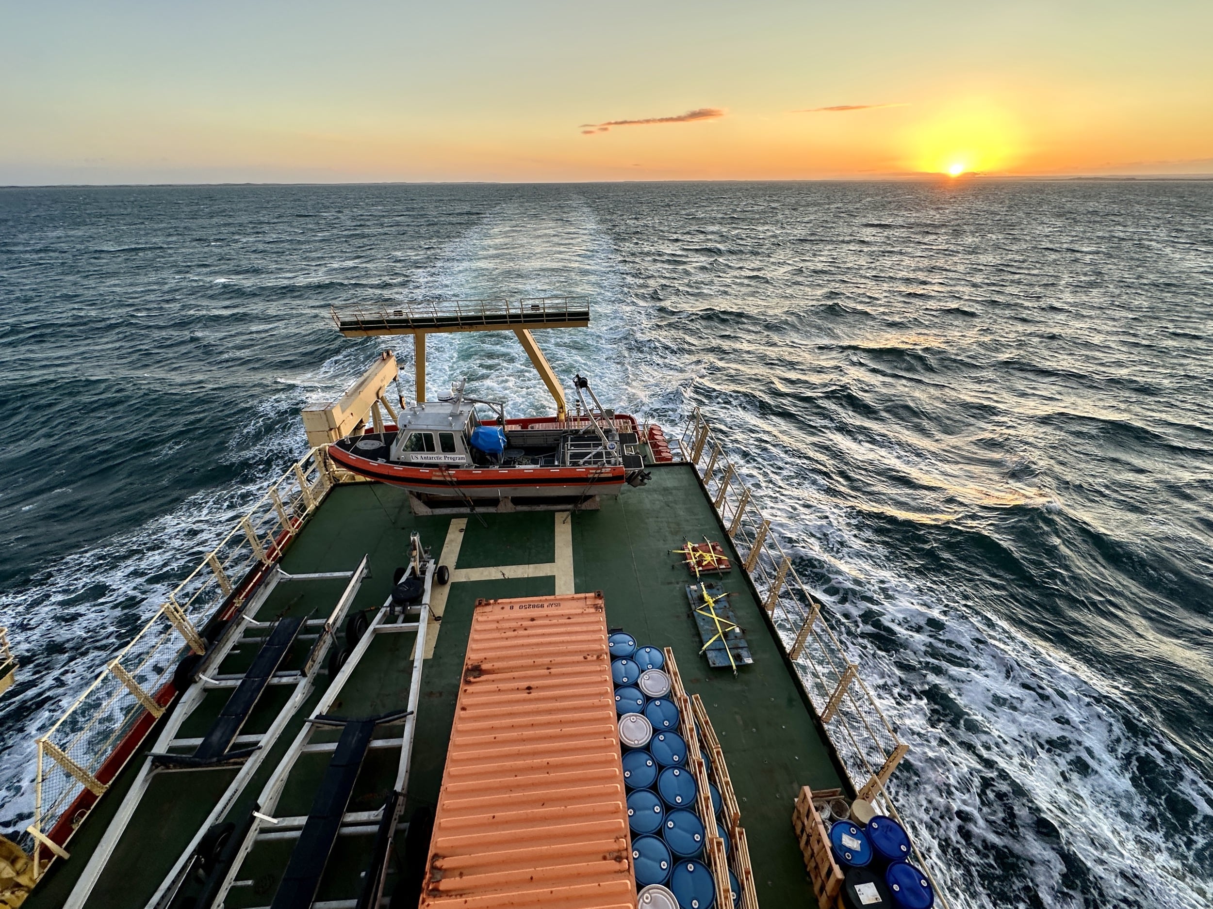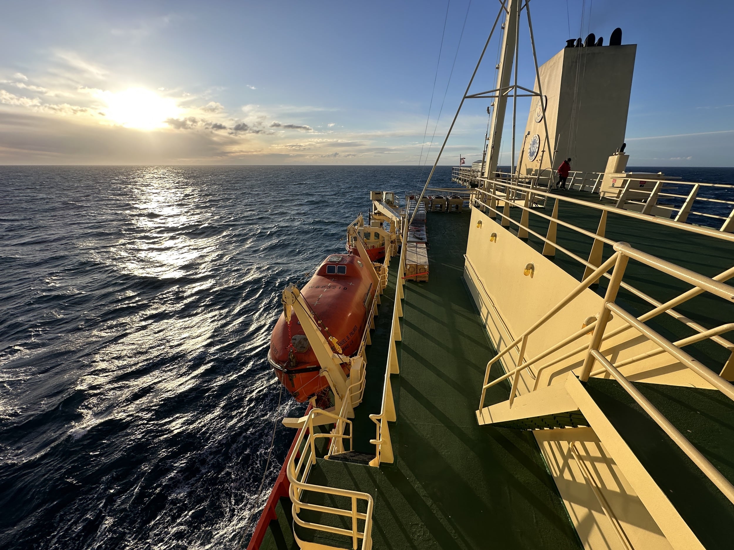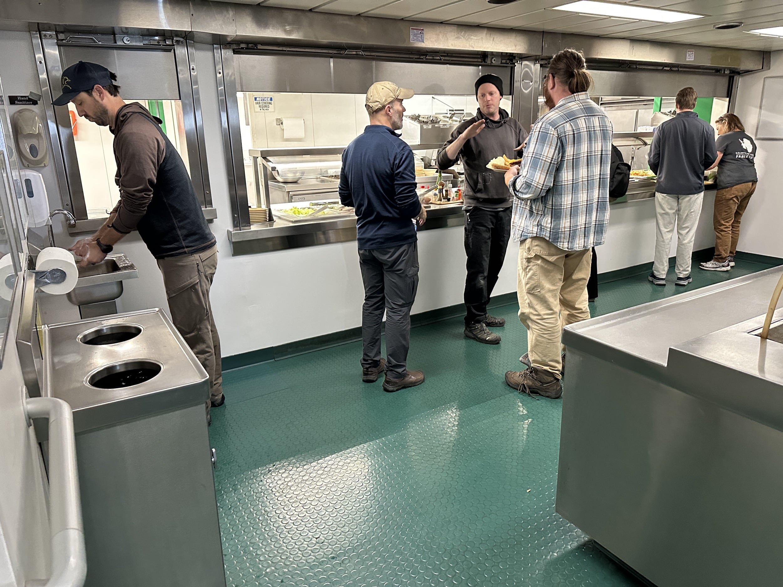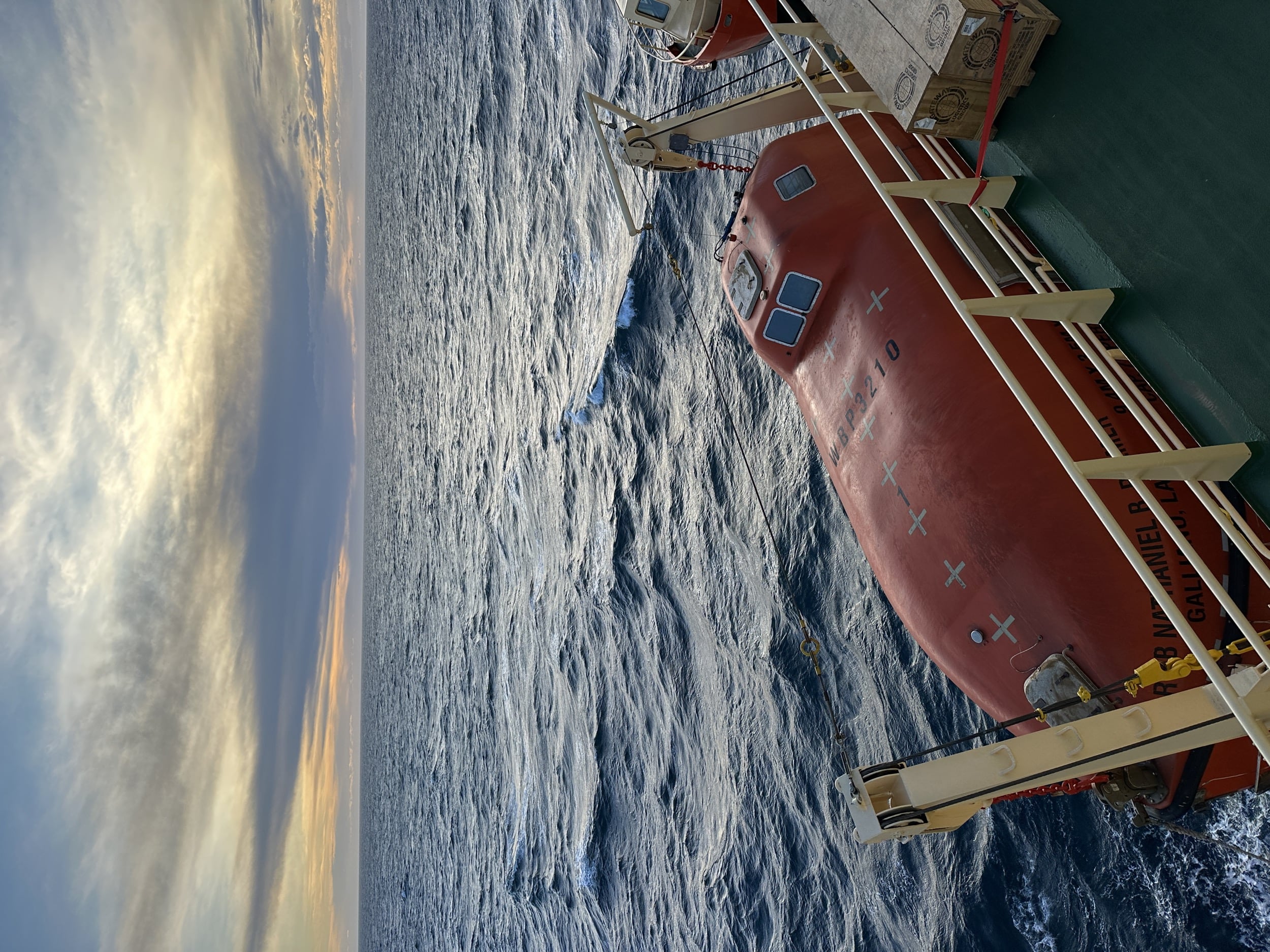 At 9am the following morning they pulled up the gangway, tossed the lines, and pushed away from the dock: we were now officially on our way to Palmer Station! Very exciting stuff. The energy was high, we were all very excited to finally be underway (as they say), but there was also something somber in the air because this would be the final voyage to Antarctica for the Nathaniel B Palmer after 33 years of service with the National Science Foundation (DOGE, budget cuts, etc).