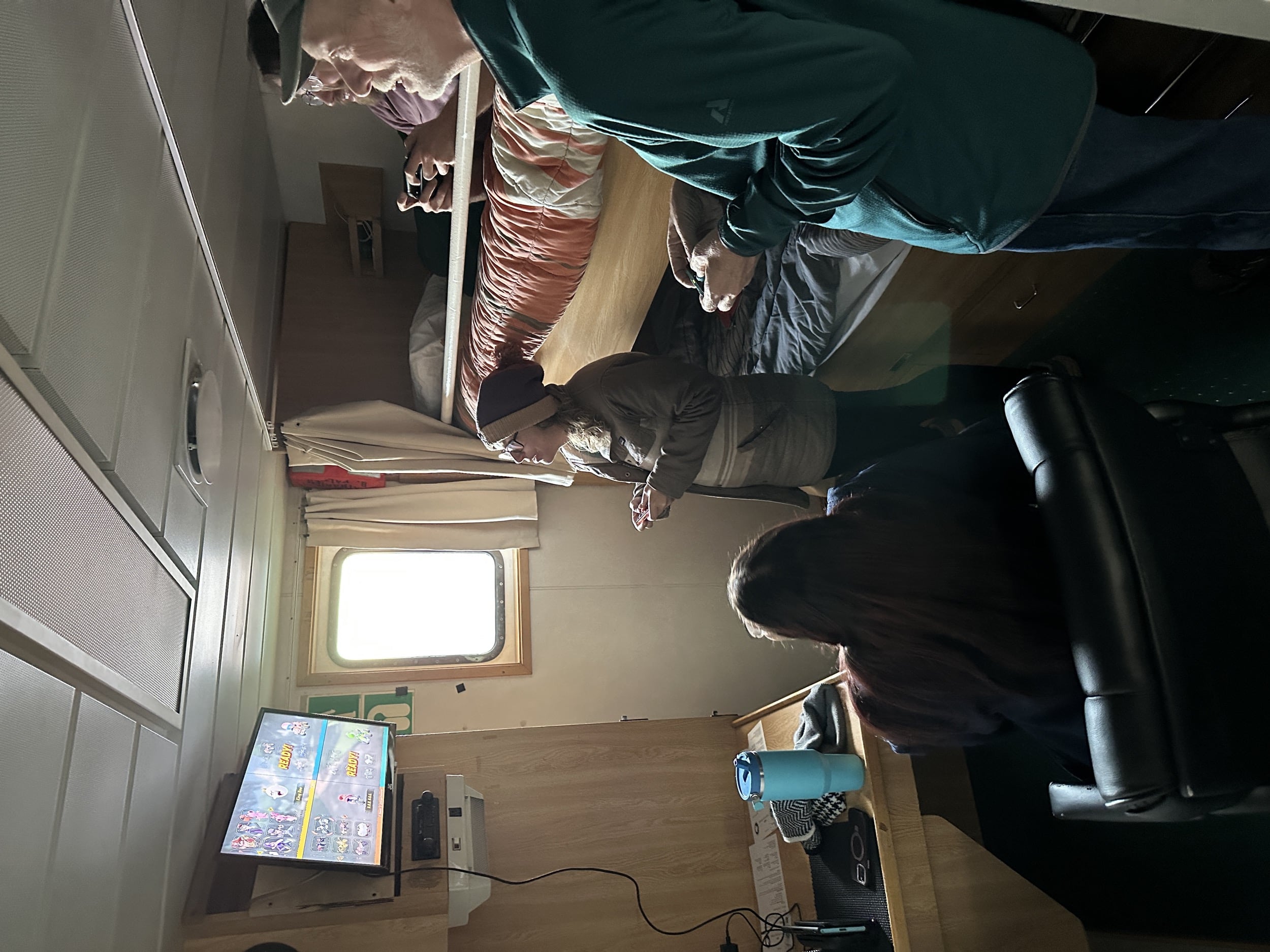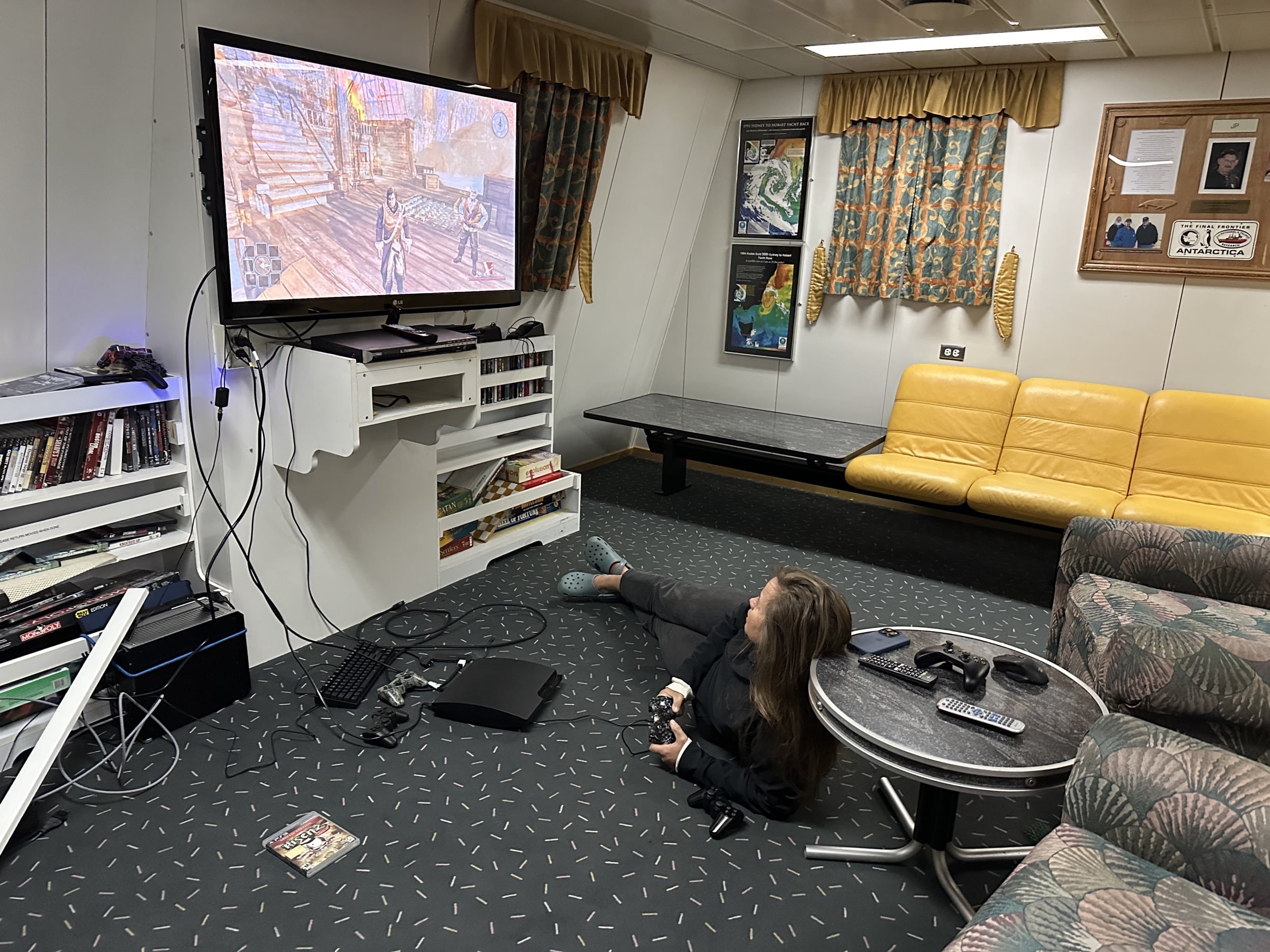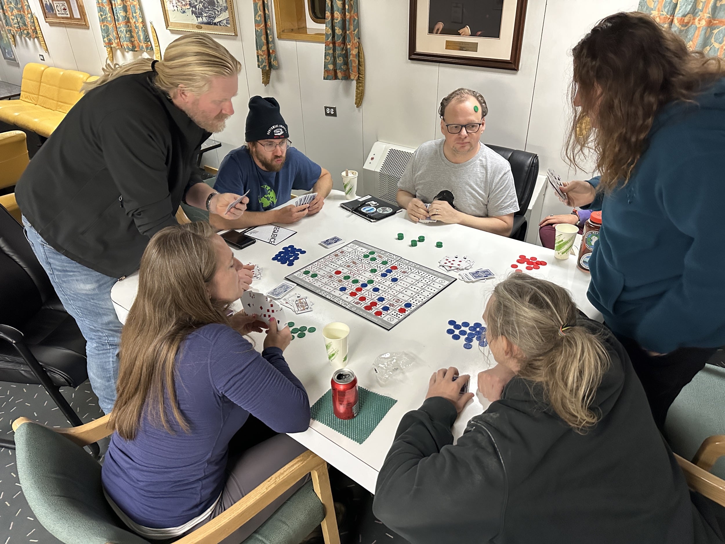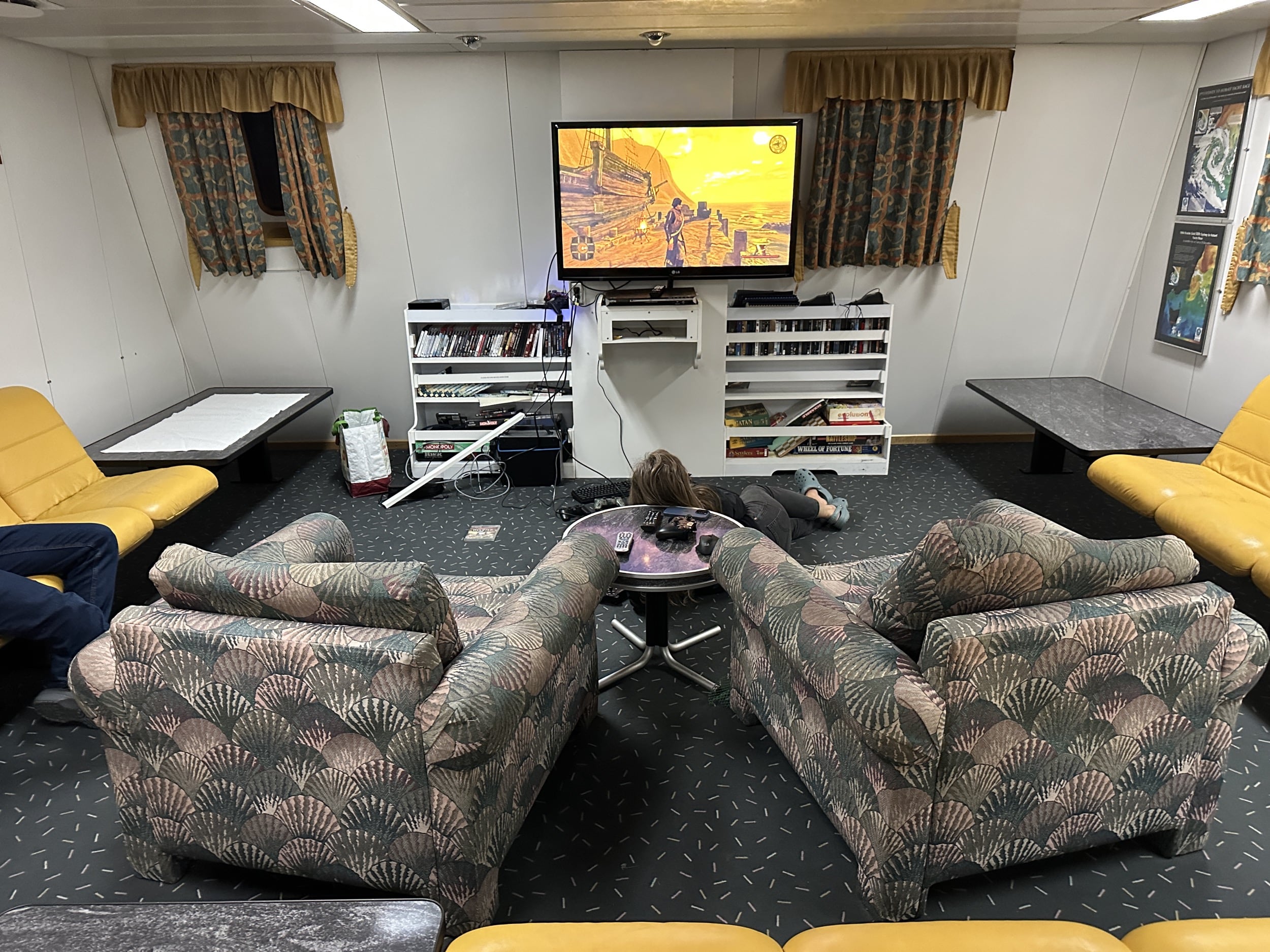 Overall, the first night at sea was mellow with very calm seas as we passed through the Straight of Magellan. We watched movies in the lounge and some folks whipped up a little a game night.