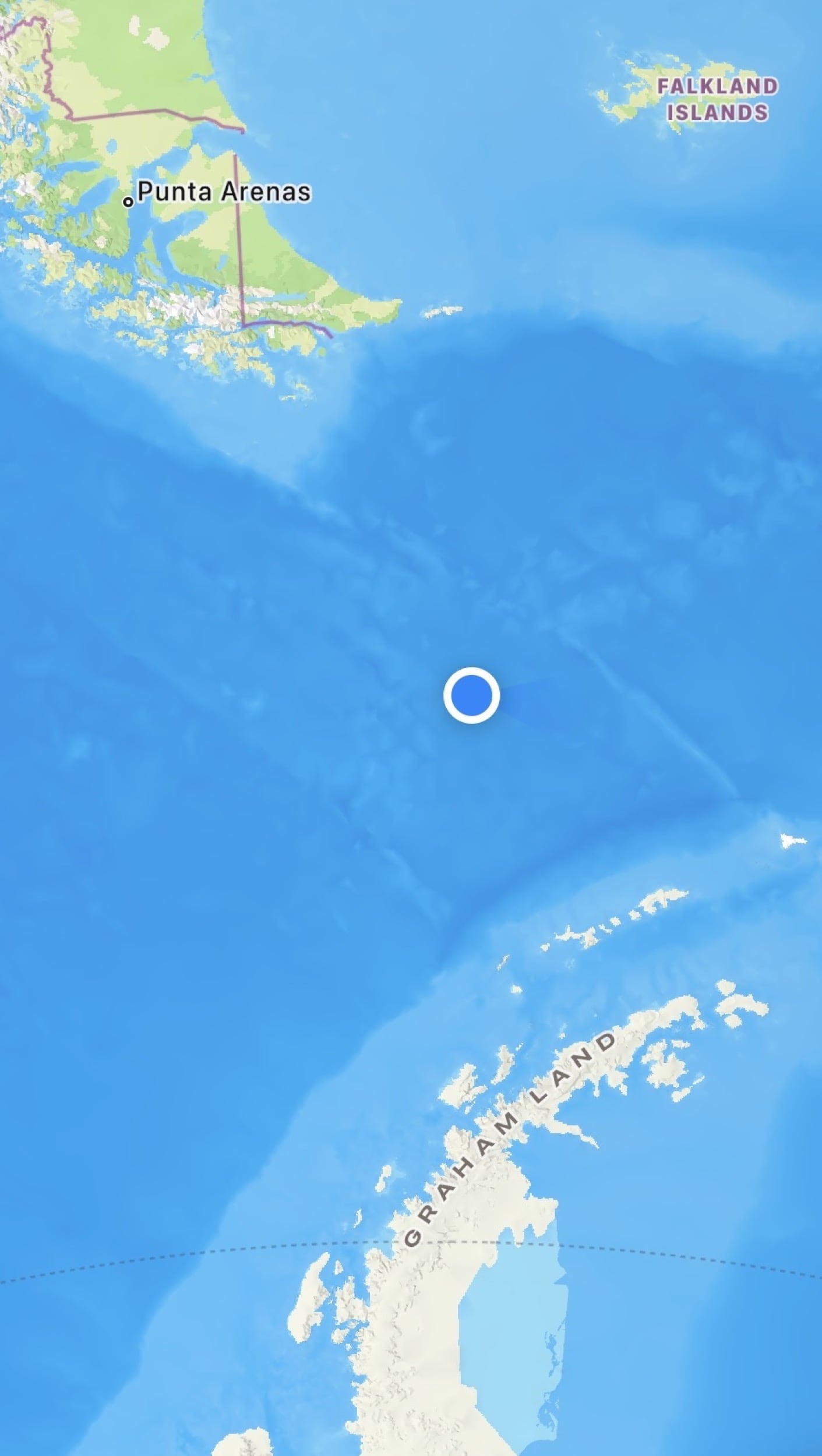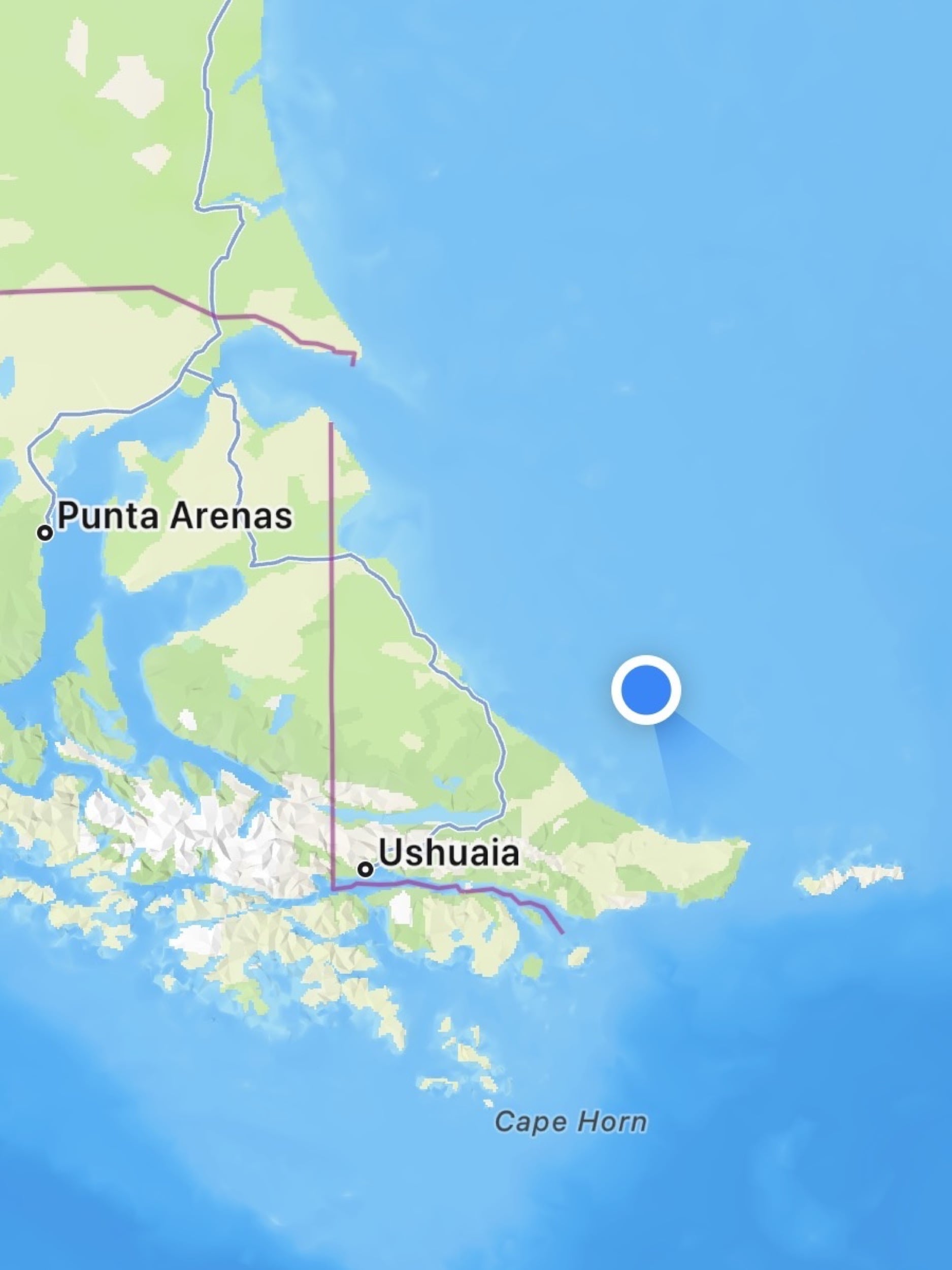Woke up the next morning to learn that the bulk of the storm had passed, and we were pushing off into the void! If you zoom in and look closely at the horizon in the following photo, you can see Le Maire Straight that we had recently passed through! I took that photo from the stern of the vessel, facing north, with the eastern extremity of the Argentine portion of Tierra del Fuego on the left and Isla de los Estados ("Staten Island") on the right. We were finally dipping our toes into the Drake Passage!