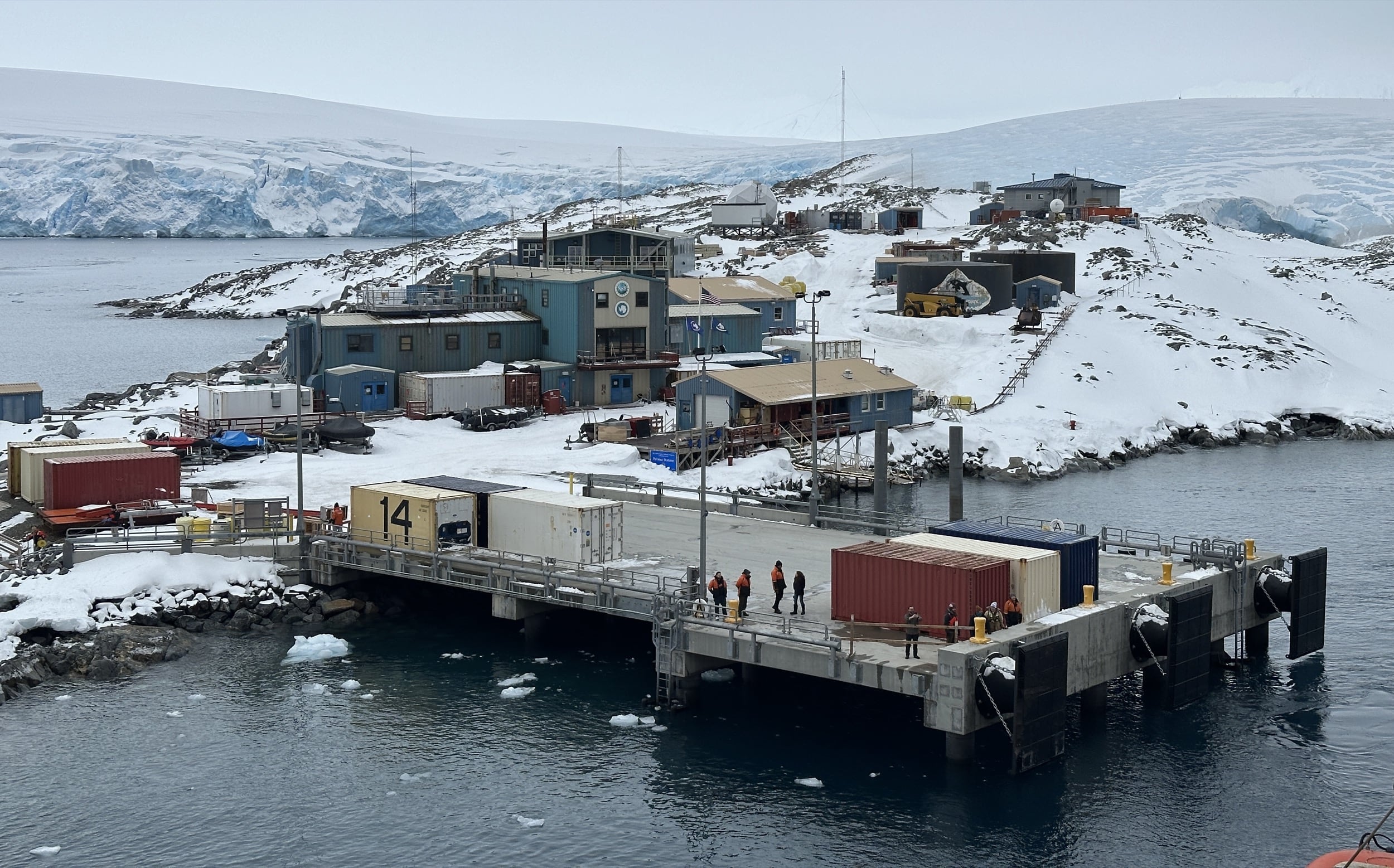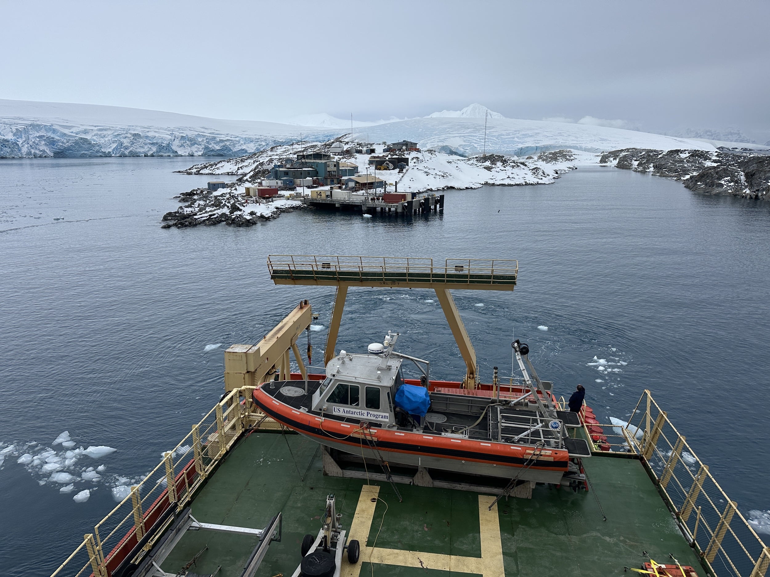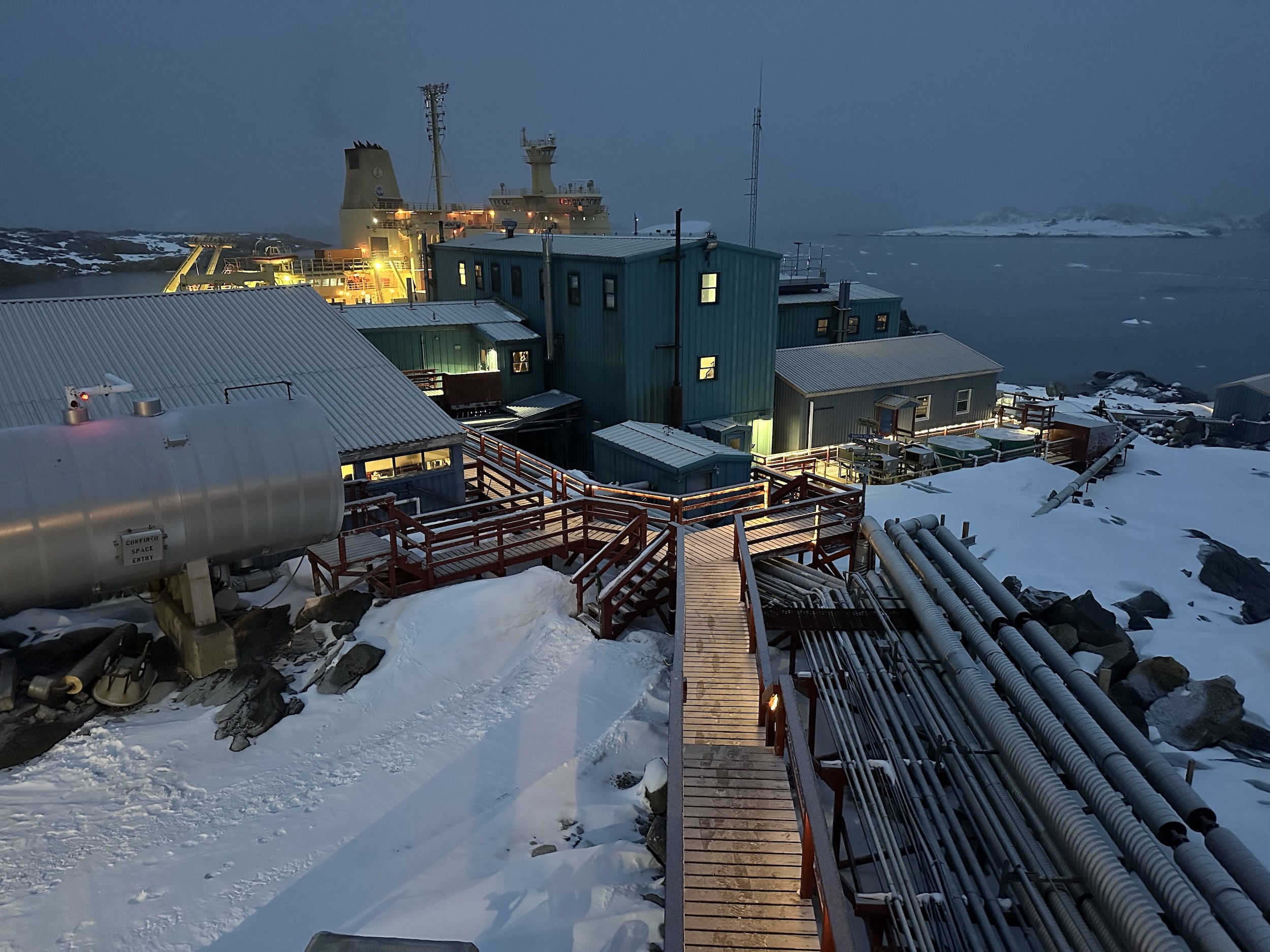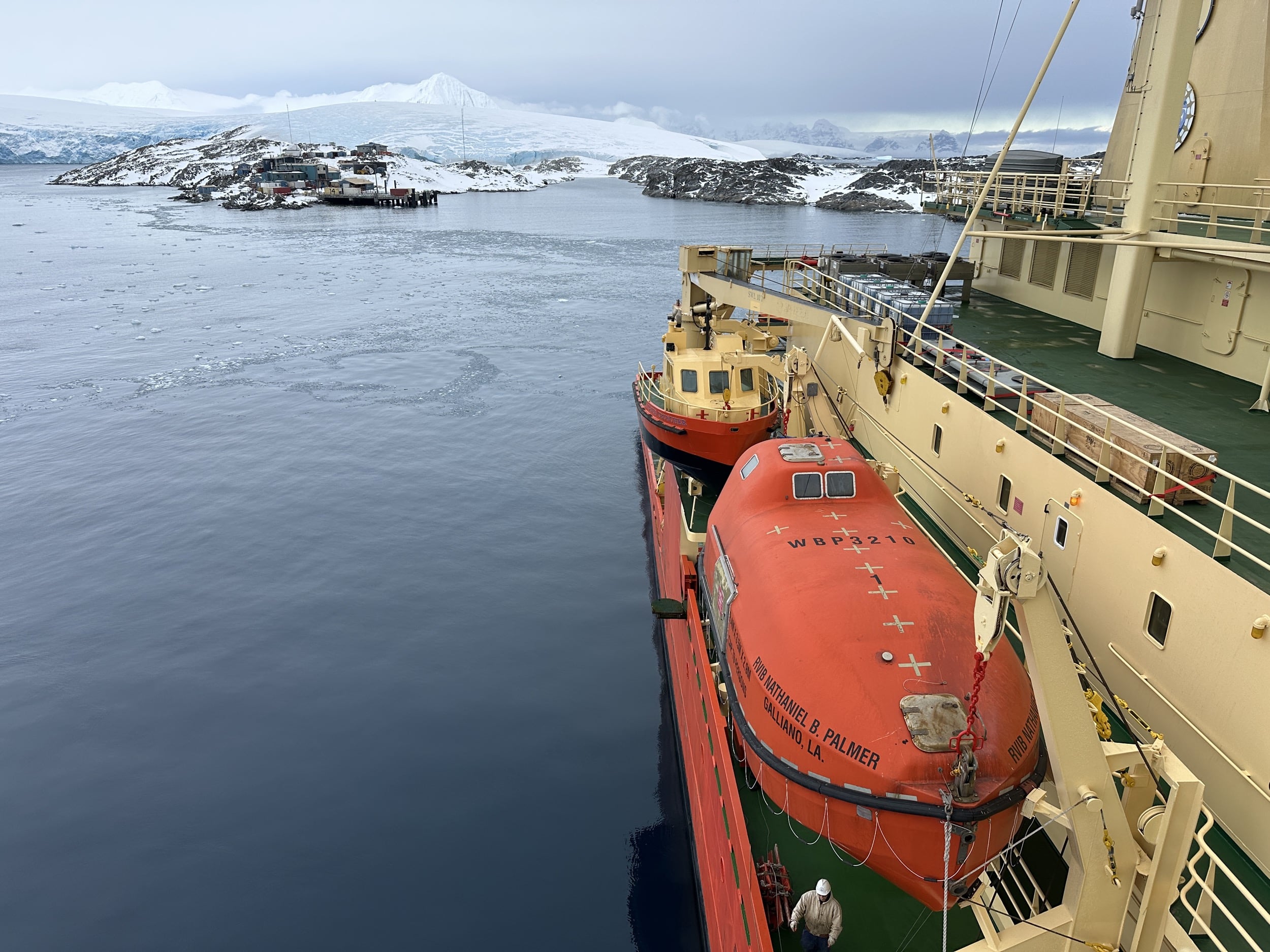 As we exited the Neumayer Channel and came around the corner, we caught our first glimpses of Palmer Station, nestled in there right at the foot of the Marr Ice Piedmont Glacier. It truly towers over the station in the background.