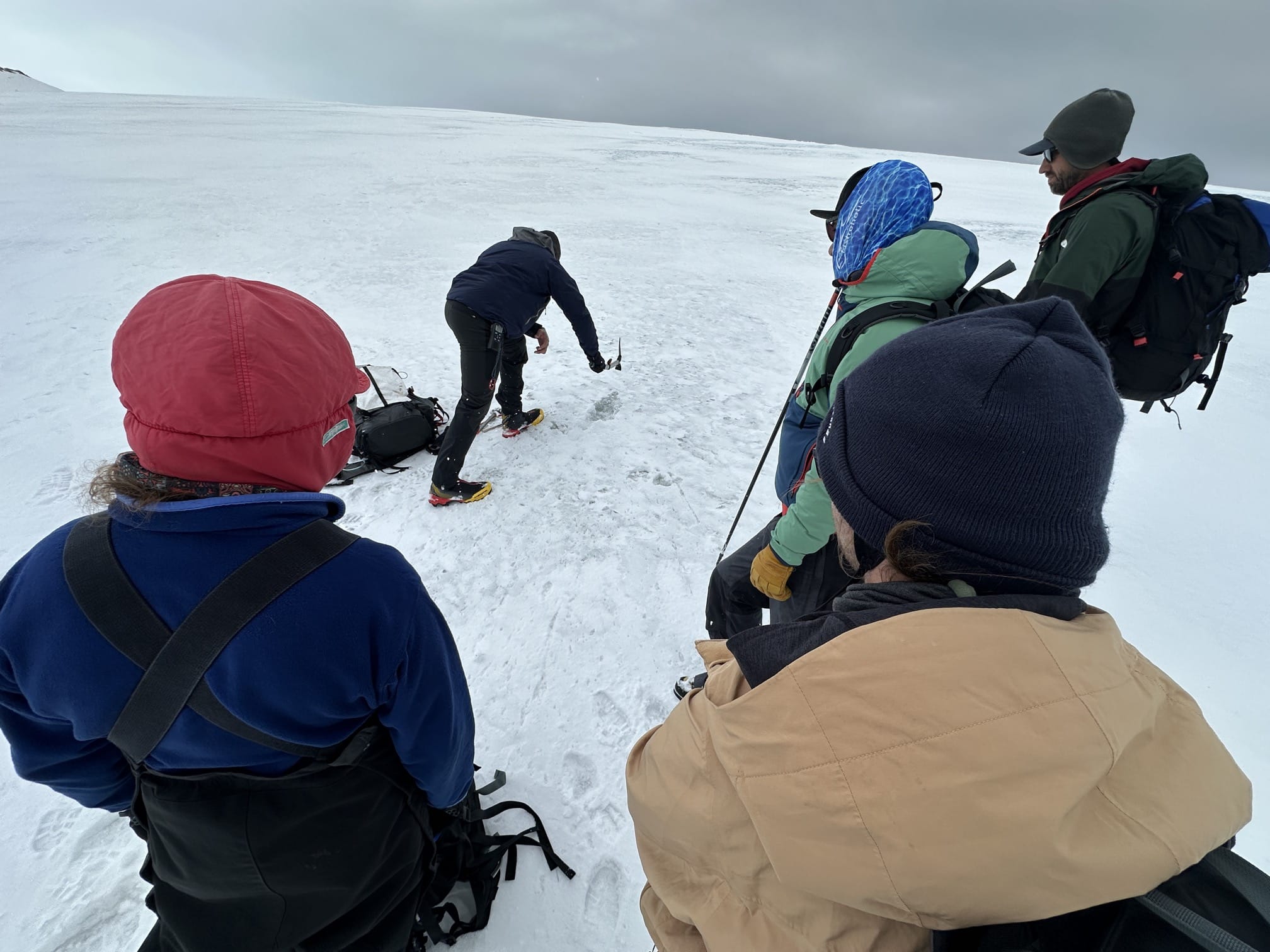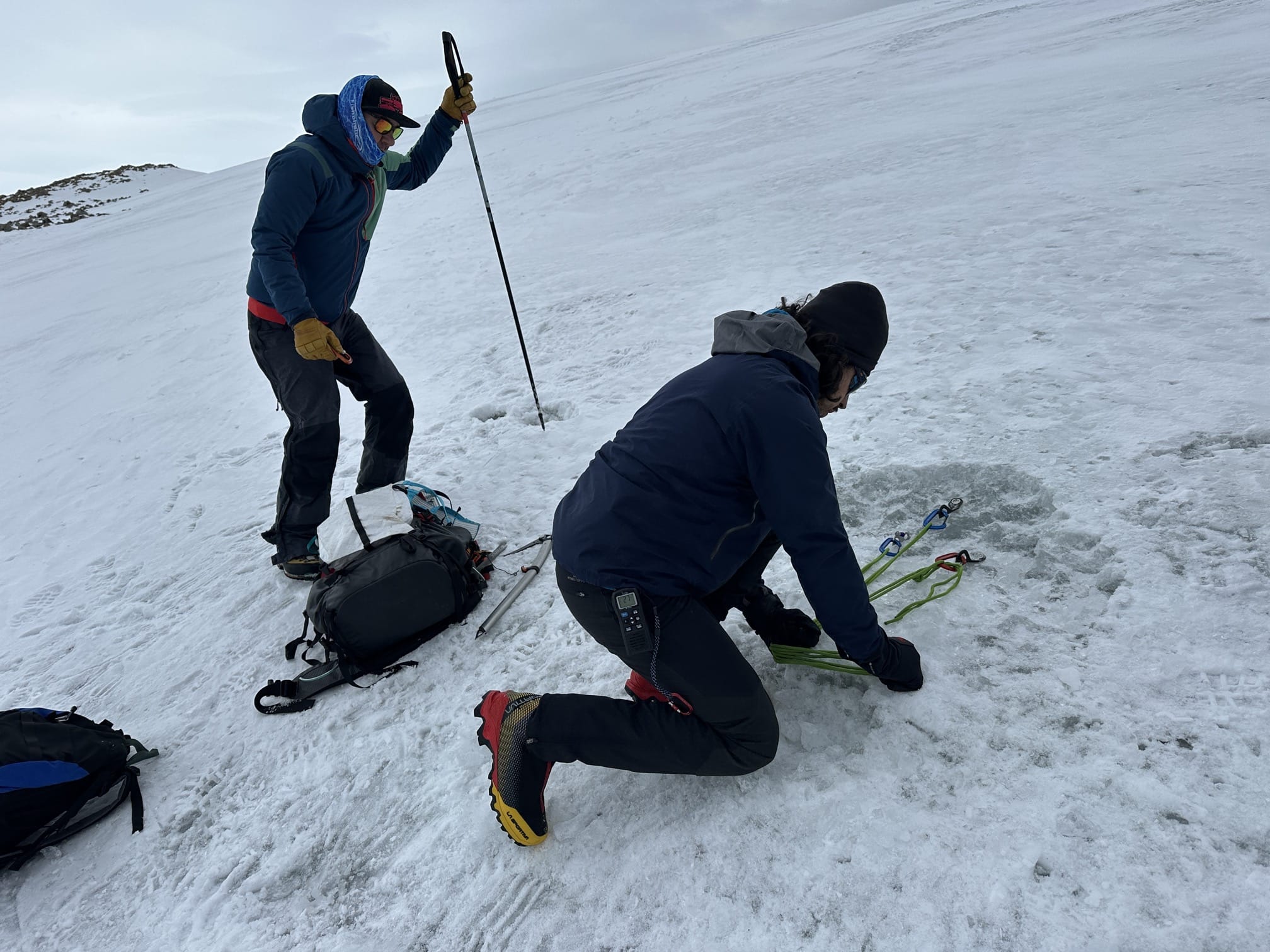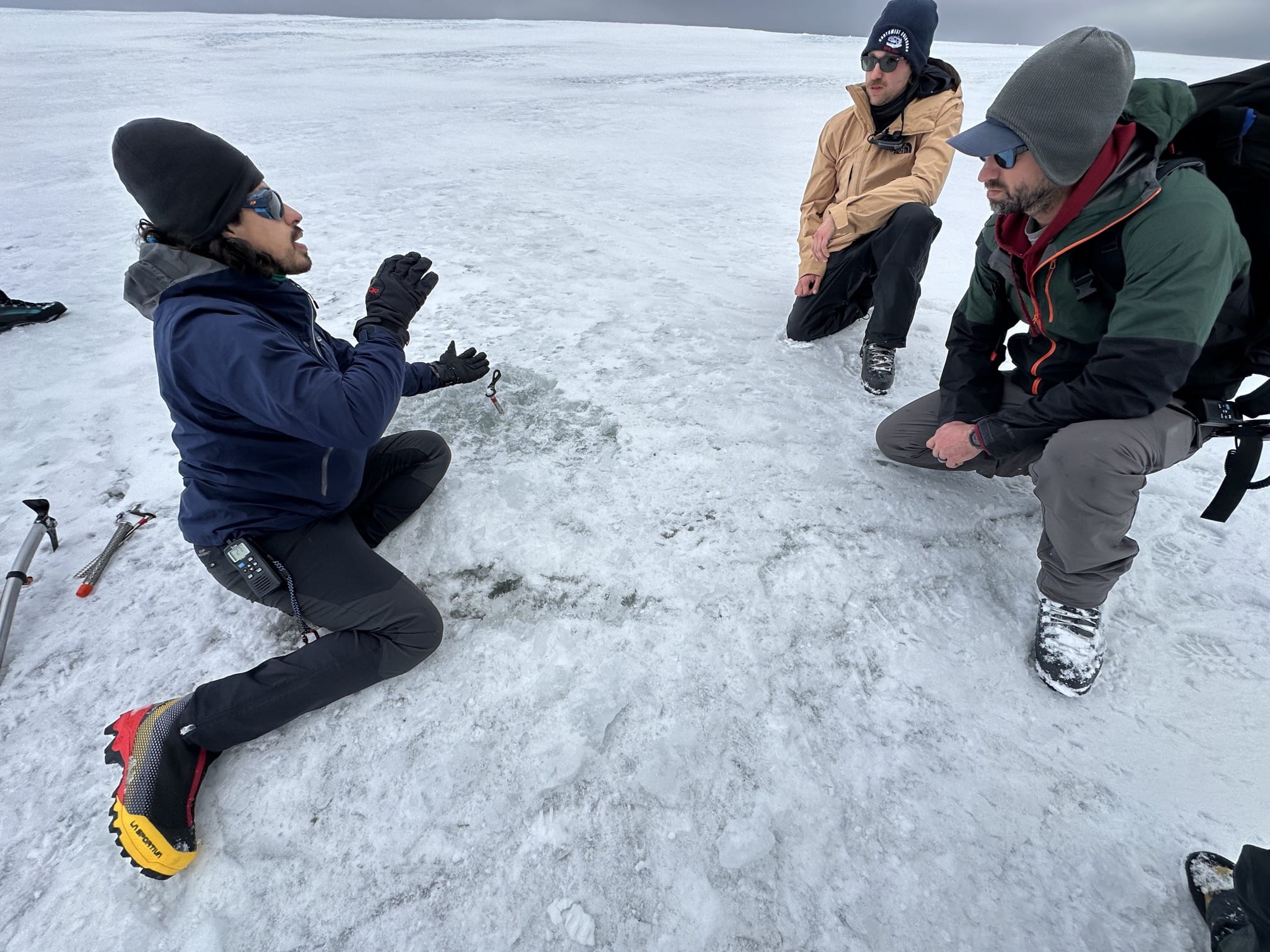 Then we posted up at the base of the glacier to practice placing ice screws and setting an anchor. It was our first introduction to the gear and the ropes and the knots and the basics of glacier rescue. Good times!