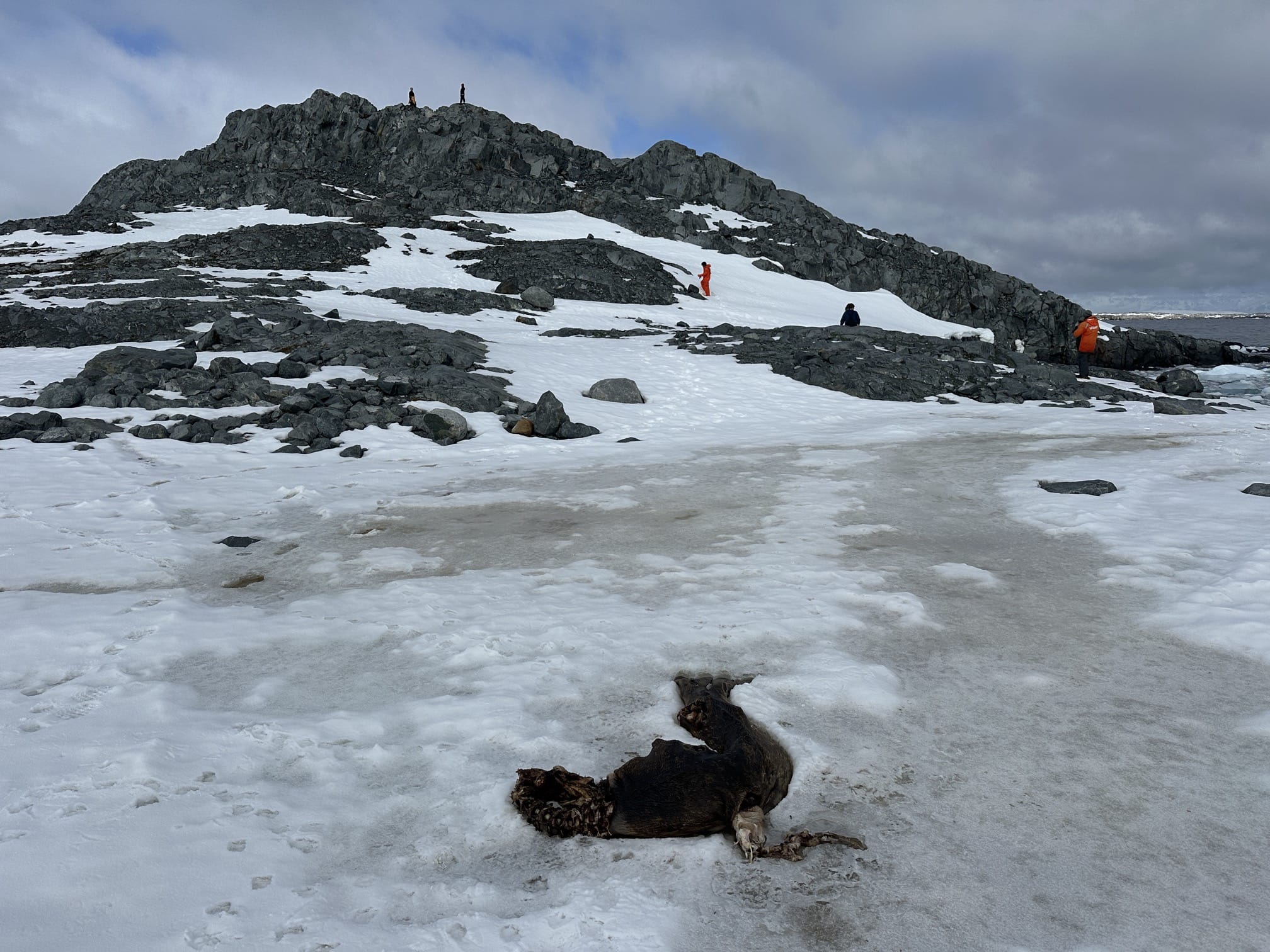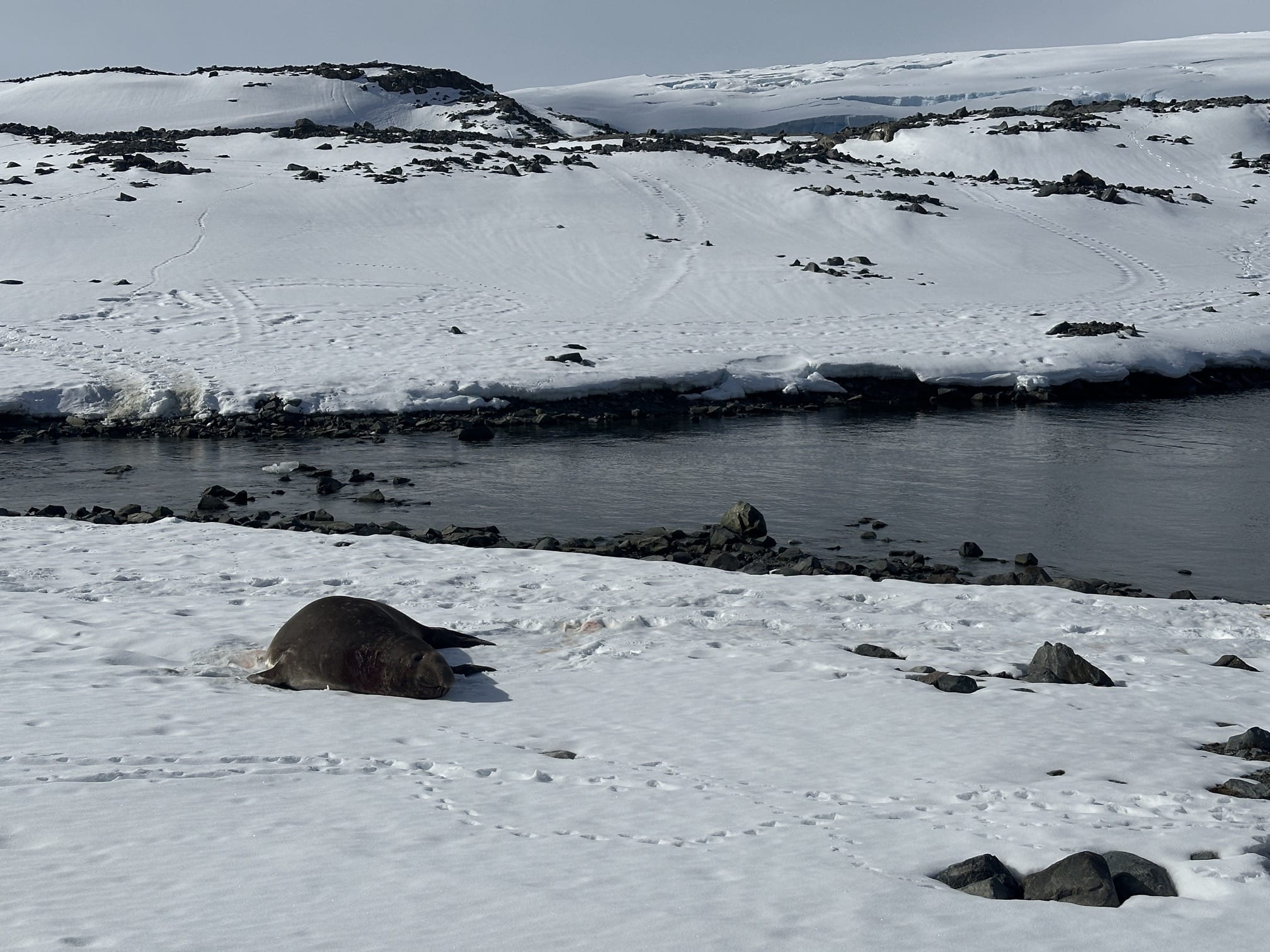 The rotting carcass of a seal and the massive footprint of a Giant Petrel...